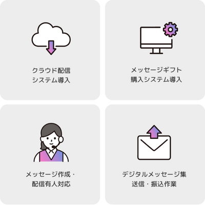有償メッセージ配信からメッセージテザイン作成、テジタルブック化、クラウド配信までシステム化!